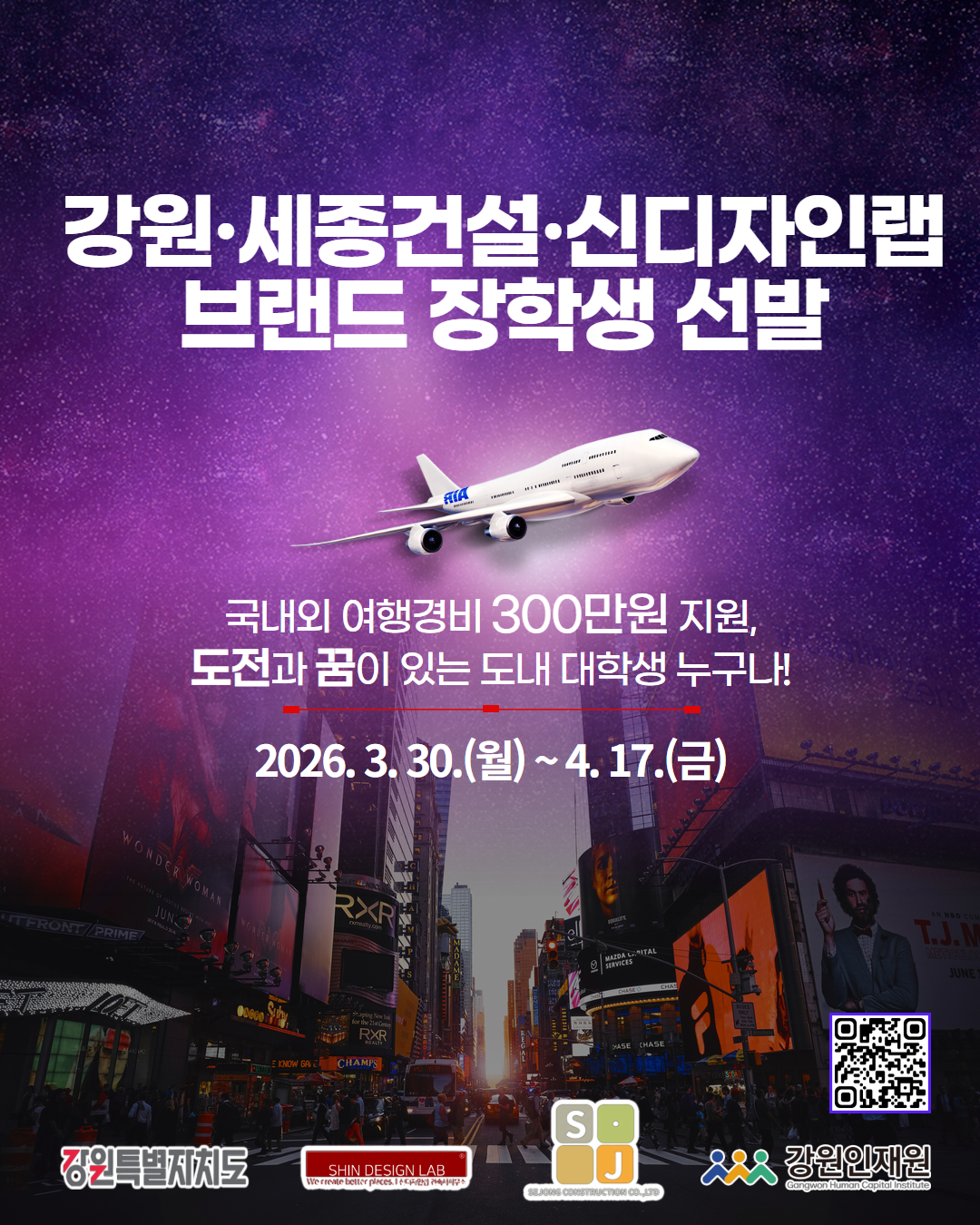 2026년 [강원·세종건설·신디자인랩] 브랜드장학금 장학생 선발공고문